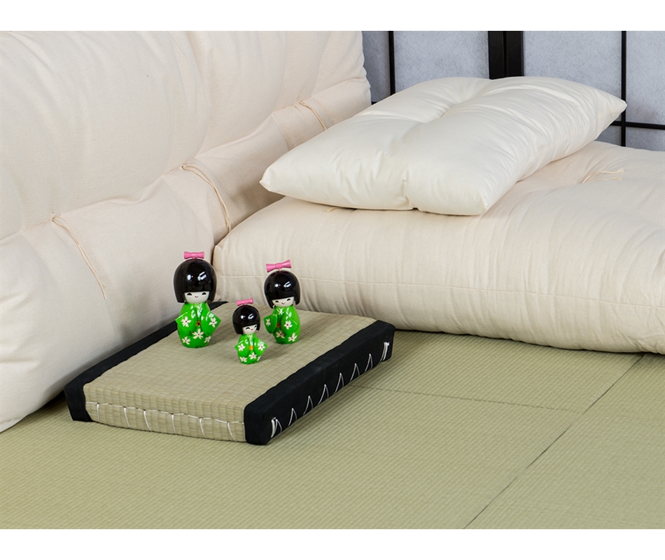 Dimensioni 30x60x6 cm. Si adattano come comodino a tutti i nostri tatami oppure ad un letto a pedana basso come lo Yama o il Dock. I tatami tradizionali sono così composti: interno in paglia di riso pressata e rivestimento di giunco intrecciato.