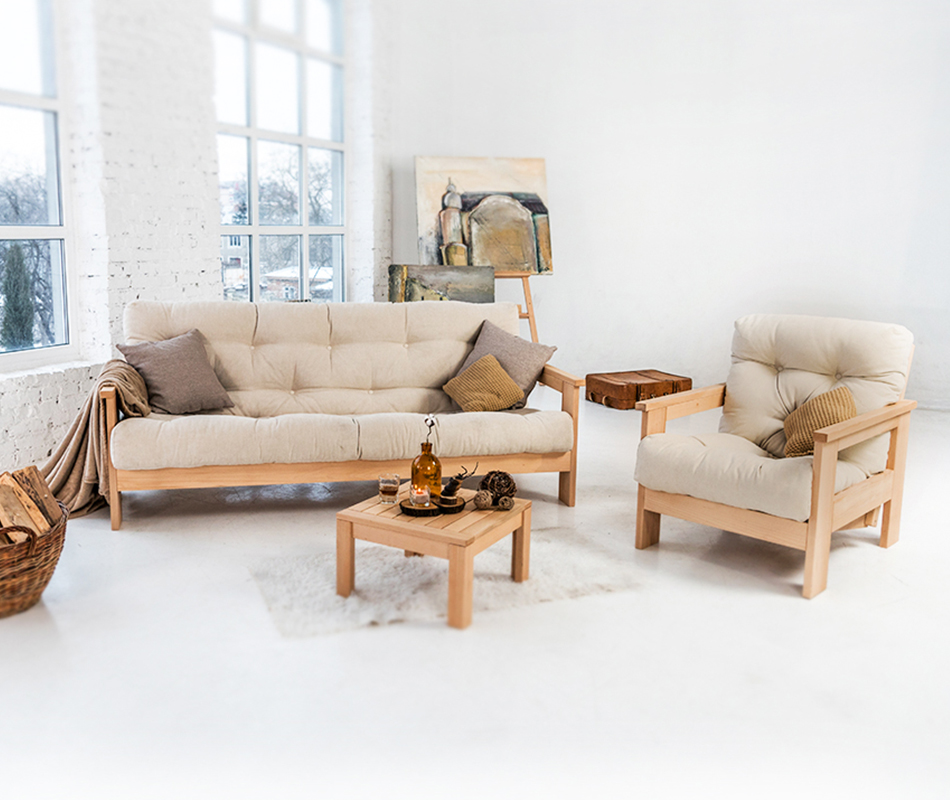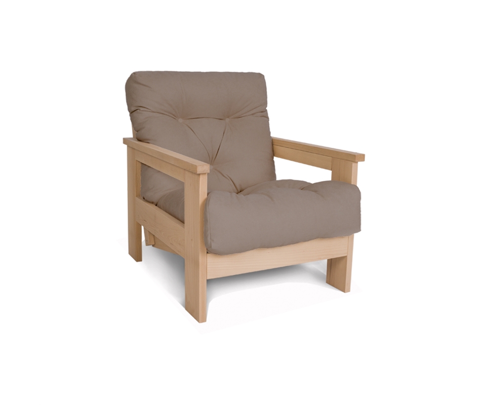Poltrona reclinabile in legno di faggio. Può essere abbinata al divano o al tavolino Levante. La poltrona è disponibile in finitura naturale o noce, entrambe realizzate con olio di lino, oppure non trattata. Struttura in legno di produzione europea, futon Viverezen realizzato in Italia. Futon 70x140 alto 10cm in cotone con inserto in polilatex. Il rivestimento in cotone 100% può essere in greggio o in varie tonalità di colore. La trapuntatura del futon è ottenuta tramite laccetti e non botton...